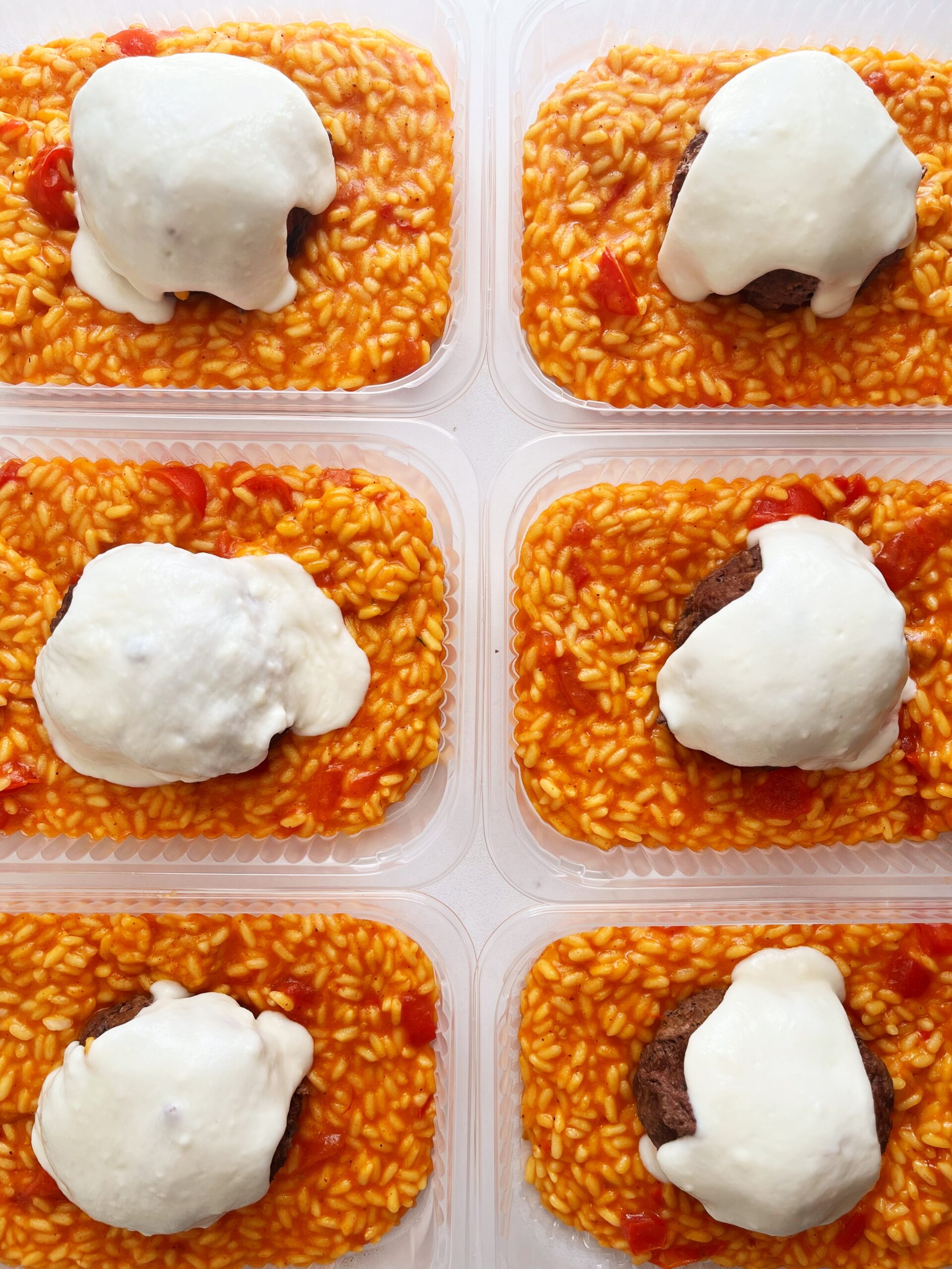 Polpetone de carne ao molho de parmesão (120g), risoto de tomates confit (230g) – prato sem glúten