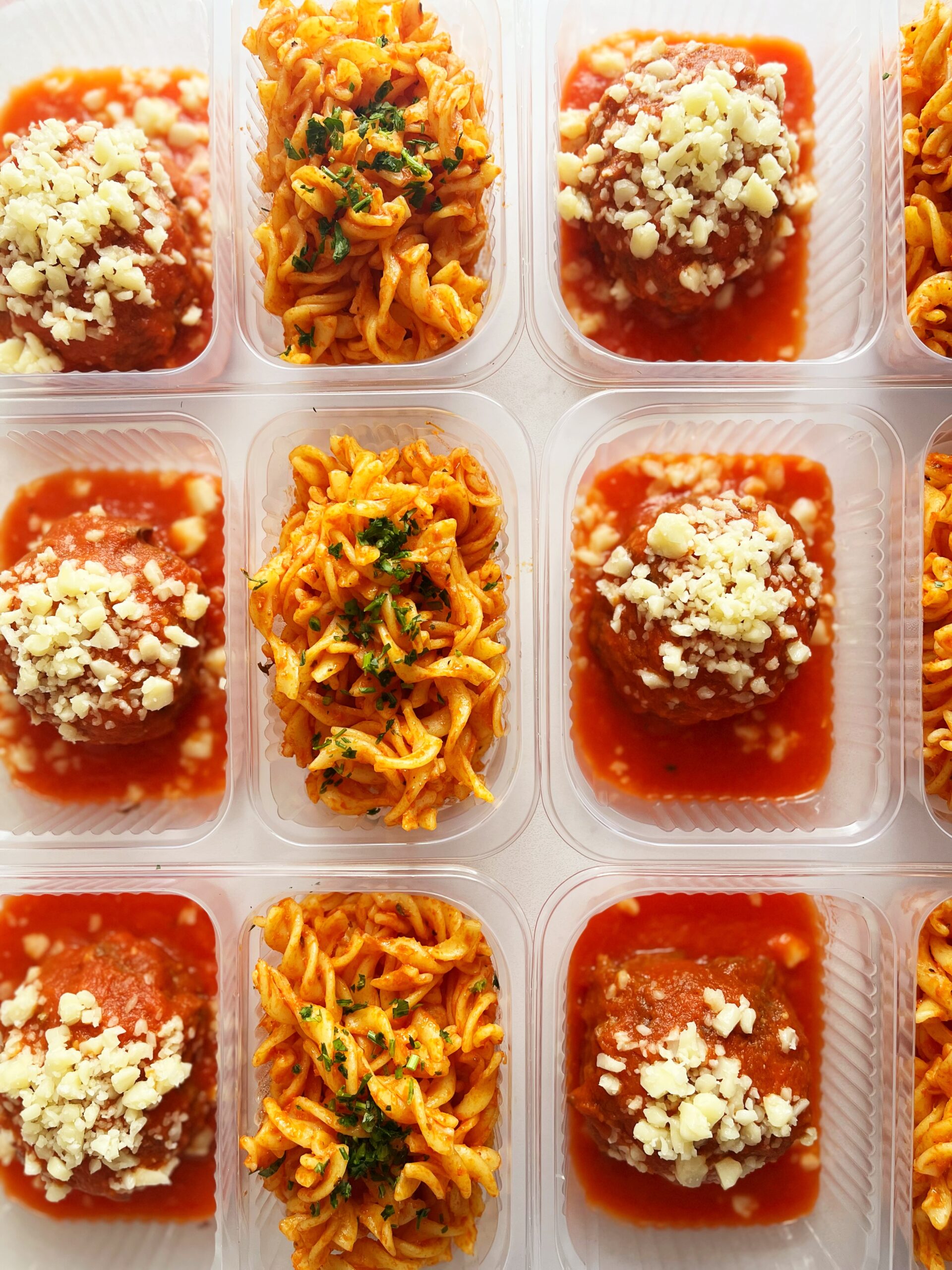 Almôndega de carne à parmegiana fit (180g), fusili sem glúten (170g) – prato sem glúten