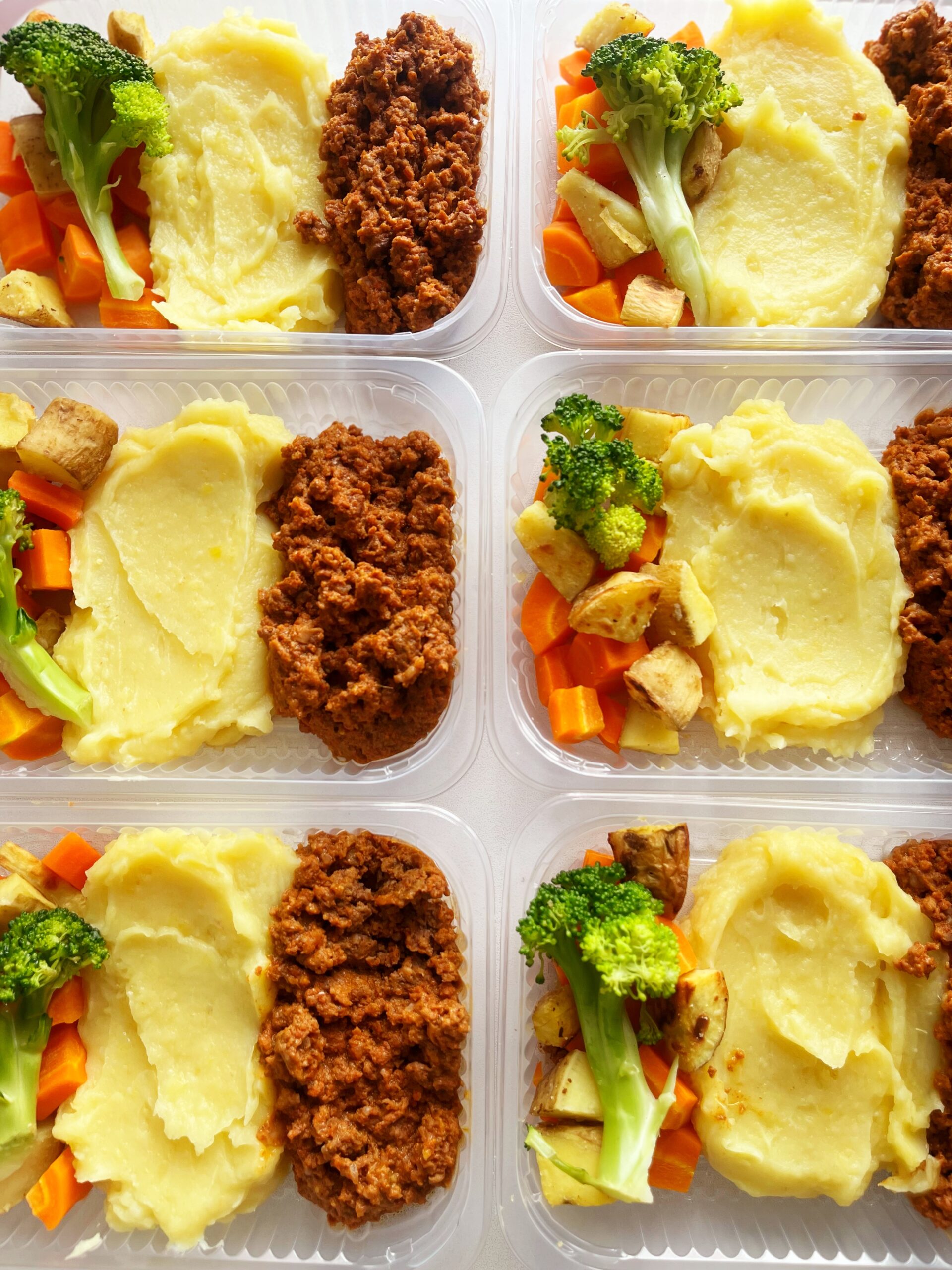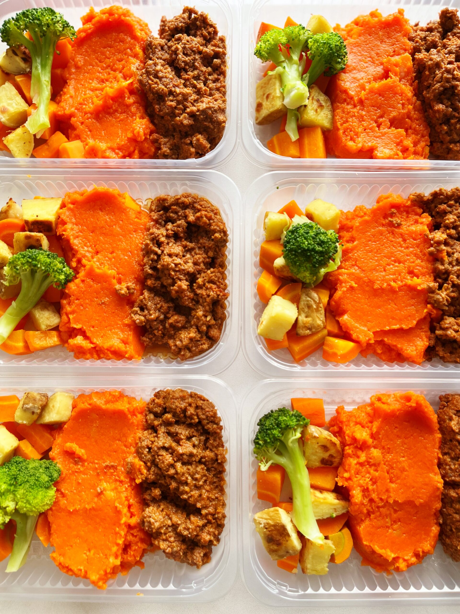 Carne moída (120g), legumes, (80g), purê de mandioquinha (150g) – prato sem glúten/lactose
