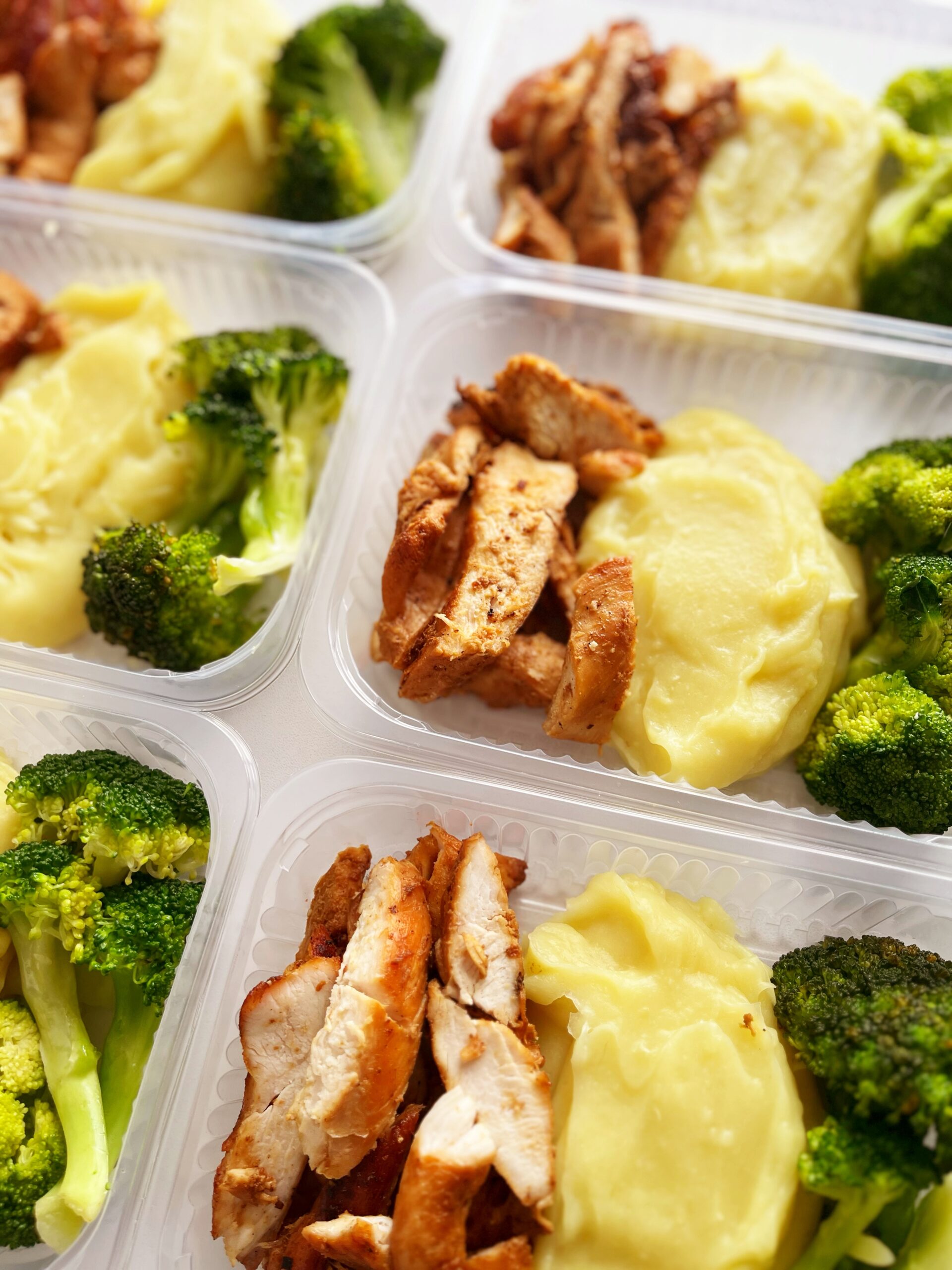 Frango grelhado (100g), purê rústico de batata doce (150g), brócolis (50g) – prato sem glúten
