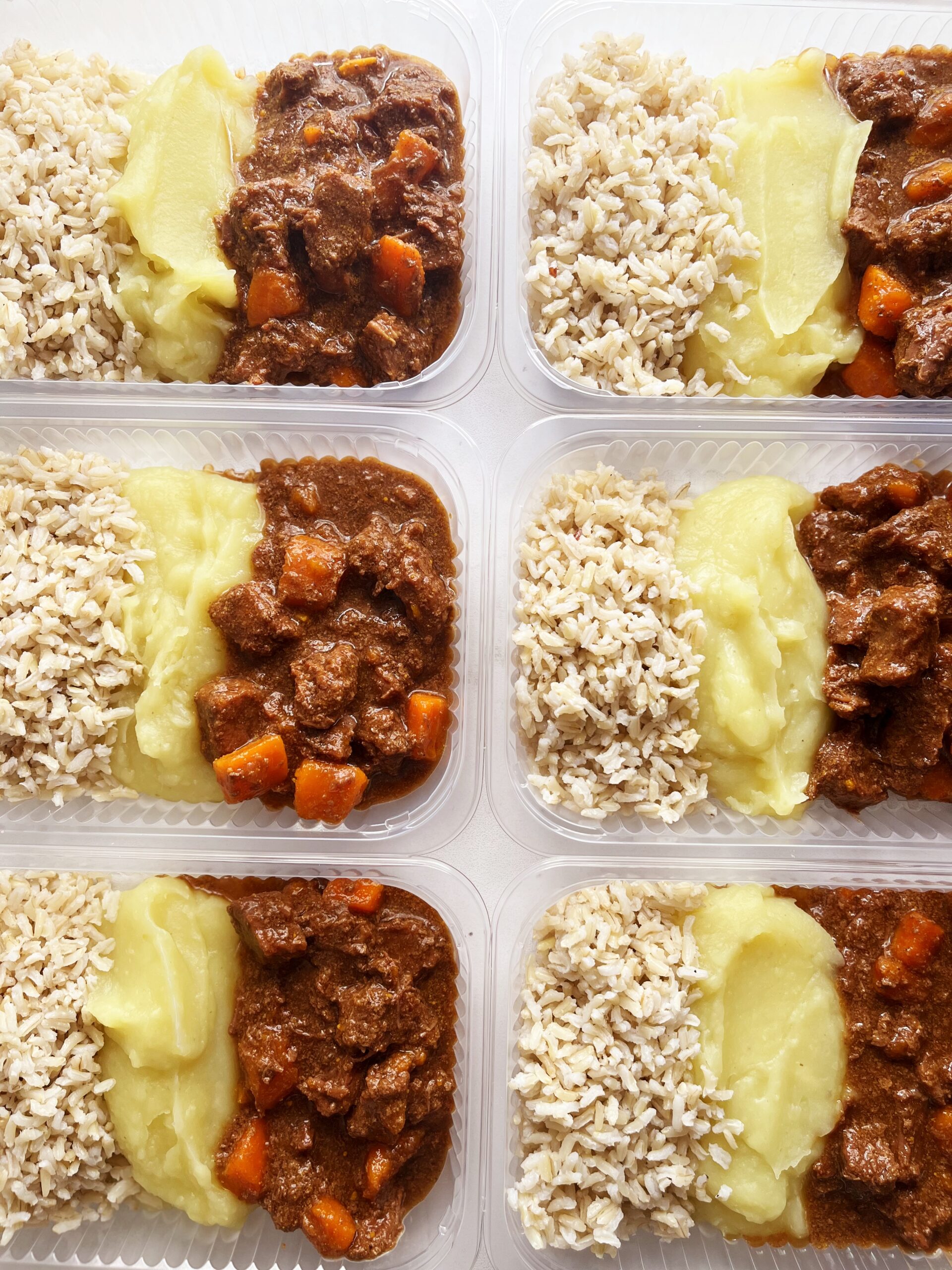 Guisado de carne e cenoura na cerveja preta (150g), purê de batata doce (120g), arroz integral (80g) – prato sem lactose